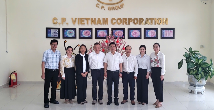 | Phó Chủ tịch UBND thành phố Trần Hữu Thùy Giang chụp ảnh lưu niệm cùng lãnh đạo, CB-CNV Công ty cổ phần Chăn nuôi C.P - Chi nhánh Huế |