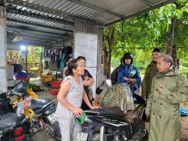 Trực tiếp đến từng hộ gia đình có nhà ở sát bờ sông Hương thuộc các tổ 11, 12 và 13 cồn Hến phường Vỹ Dạ, Phó Bí thư Thường trực Tỉnh ủy Phan Ngọc Thọ chia sẻ với những khó khăn, vất vả mà các hộ dân gặp phải mỗi khi mùa mưa bão đến.
