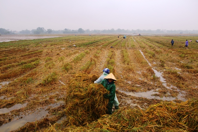 Tại huyện Quảng Điền, ông Lê Văn Tân, Giám đốc HTX Sịa 2 (thị trấn Sịa) cho biết, đến sáng 26/5,vẫn còn 5ha lúa đông xuân của HTX chưa gặt kịp. Những diện tích này đa số nằm ven sông Diên Hồng. “Hiện nay đê sông Diên Hồng có cao trình thấp, nếu tiếp tục mưa thì số diện tích lúa này xem như mất trắng vì hiện này nước sông đang lên”, ông Tân cho hay.