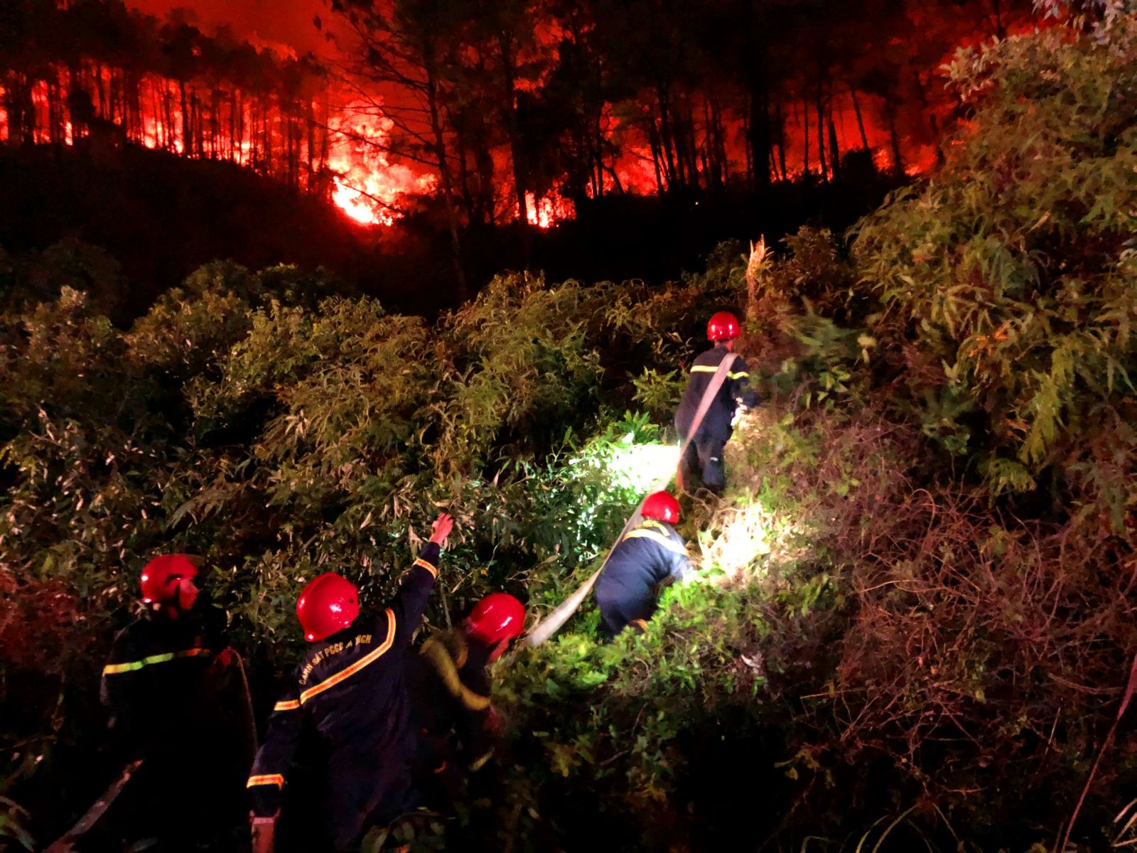 Do địa hình dốc đứng, lại vào buổi tối nên các lực lượng tham gia chữa cháy rất vất vả mới có thể tiếp cận khu vực lửa bùng phát. Trong lúc dập lửa, thỉnh thoảng vẫn nghe tiếng nổ của đạn còn sót lại từ thời chiến tranh quanh khu vực này.