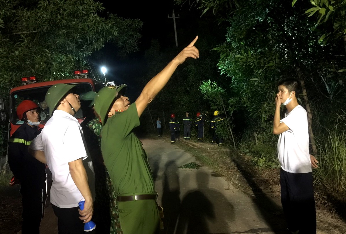 Phó Chủ tịch UBND tỉnh Hoàng Hải Minh (ngoài cùng, bên phải) xuyên đêm tại tiểu khu 152 cùng với lực lượng chữa cháy