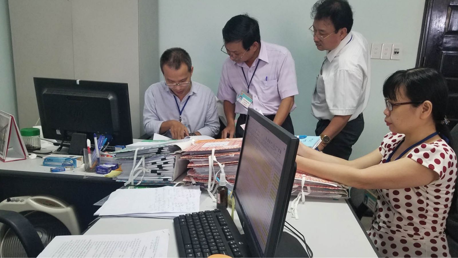 Cán bộ Chi cục thuế TP. Huế rà soát danh sách các DN, hộ kinh doanh được miễn, giảm và gia hạn tiền nộp thuế