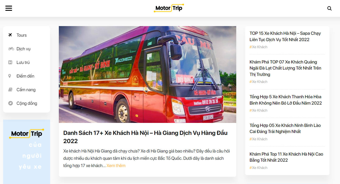 Website motortrip.vn cung cấp nhiều thông tin hữu ích trong lĩnh vực du lịch