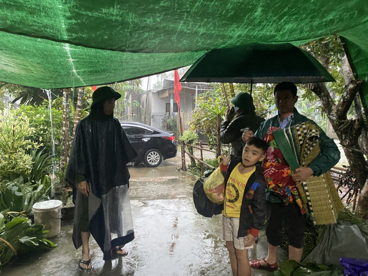 Chiều 14/10, người dân phường Hương Vân được di dời, sơ tán đến nơi cao ráo, an toàn
