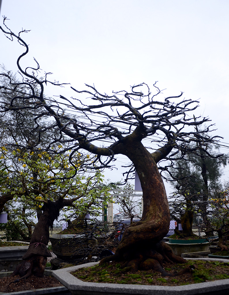 Nếu nói về tổng số lượng cây mai, vườn mai này có vẻ khiêm tốn. Nhưng nói về “mai cụ”, có gốc lớn, dáng thế kỳ quái thì e không có vườn mai nào ở Huế có được. Ít nhất, vườn mai này đang sở hữu hơn 50 cây mai loại “cổ thụ”.