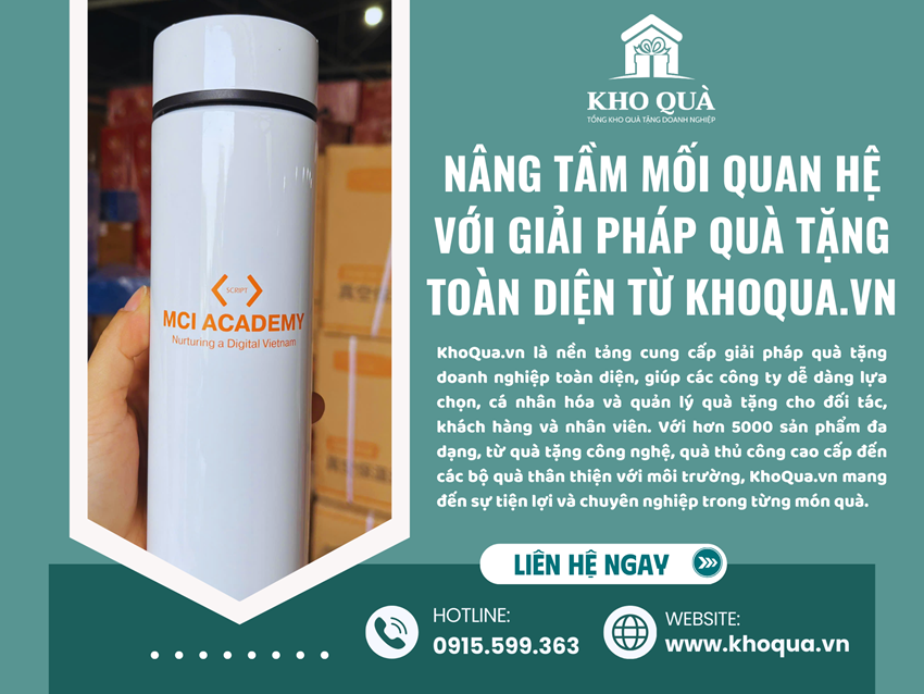 Quà Tặng Doanh Nghiệp Khoqua.vn mang đến giải pháp quà tặng toàn diện, đáp ứng mọi nhu cầu của doanh nghiệp, từ việc tri ân khách hàng, xây dựng mối quan hệ đối tác đến động viên nhân viên. Sở hữu kho quà tặng đồ sộ với hơn 5000+ sản phẩm đa dạng, trải rộng từ bát đĩa, bộ ấm chén, lọ hoa, khay mứt, bình giữ nhiệt, túi vải canvas, ô dù quà tặng in logo, áo mưa, đồng hồ. Bất kể ngân sách hay mục đích tặng quà của bạn là gì, Khoqua.vn đều có thể đáp ứng với các lựa chọn phù hợp, đảm bảo chất lượng và mang đậm dấu ấn riêng.