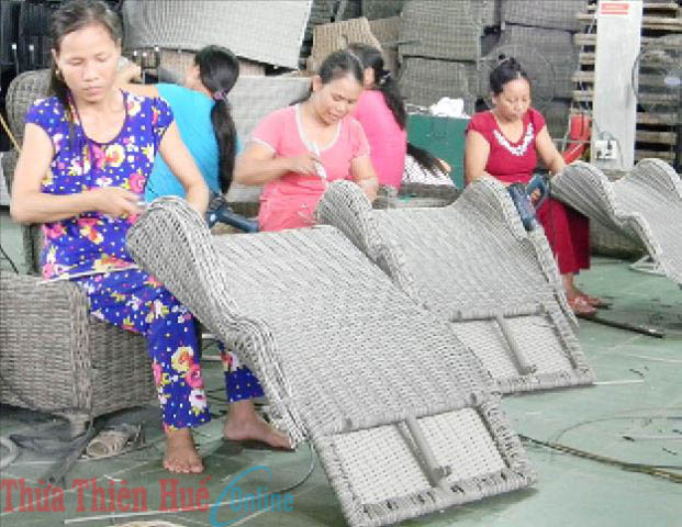 Xưởng đan bàn ghế sợi nhựa xuất khẩu của Công ty CP Phước Hiệp Thành hiện có trên 300 lao động với công việc đan bàn ghế từ sợi nhựa, đóng khung nhôm và cắt may nệm tạo thành bộ sản phẩm hoàn chỉnh để đóng gói xuất sang thị trường châu Âu, Mỹ và Úc. Trải qua 6 năm hình thành và phát triển, đến nay DN có xưởng sản xuất ở xã Hương Văn (thị xã Hương Trà) và mở vệ tinh ở xã Quảng Vinh (Quảng Điền), giải quyết việc làm cho hàng trăm lao động. 10 tháng đầu năm nay, DN đạt kim ngạch xuất khẩu trên 80 tỷ đồng và đã nhận đơn hàng xuất khẩu đến hết quý II/2016.
