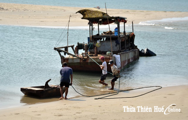 Bằng mắt thường quan sát, những lo lắng, phản ánh của người dân xã Lộc Vĩnh là hoàn toàn có cơ sở. Ở khu vực phía ngoài, từ phao ranh giới mà nhà thầu lắp đặt để nạo vét cát đã bị bồi lấp, trắng cả khu vực lớn. Thuyền của ngư dân “loay hoay” để di chuyển khi thủy triều xuống.