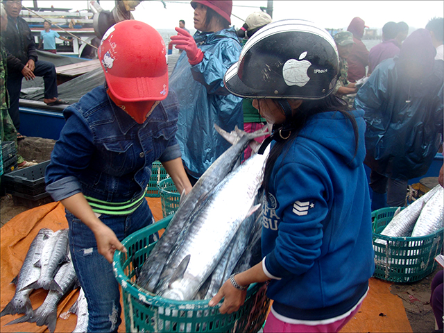 Khác hẳn với cảnh đìu hiu trước đây, bến cảng Thuận An mấy ngày nay sôi động trở lại. Hàng loạt tàu cá cập bến. Trên bến cảng, hàng chục lái buôn với những chiếc xe chở hàng chờ sẵn đợi tàu về. Cá thu, cá ngừ...nặng vài chục ký được các lái buôn thu mua tận bến. Chủ tàu Phan Tước ở thôn An Hải, thị trấn Thuận An (Phú Vang) phấn khởi: “Chuyến biển này đánh bắt hơn 5 tấn cá, hầu hết là cá thu, ngừ, chủa..., ước thu 250 triệu đồng. Cá được mua, bán ngay tại bến cảng sau đó các lái buôn phân phối tại các chợ đầu mối trên địa bàn tỉnh”.