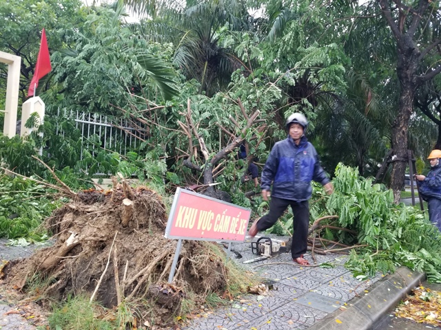 Sau hơn một ngày cơn bão số 5 đi qua, TP. Huế, vẫn còn hàng ngàn cây xanh ở nhiều tuyến đường nội thành gãy đổ chờ dọn dẹp. Vì nhân lực có hạn, nên việc dọn dẹp cây gãy đổ tùy theo tuyến đường có sự ưu tiên nhất định. Song song với việc dọn dẹp cây xanh gãy đổ, các đơn vị liên quan còn phối hợp để khắc phục sự cố điện lực, cáp quang…