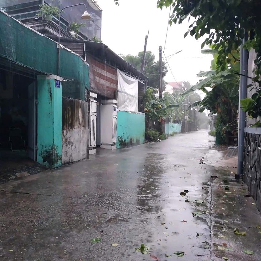 | Lúc 6 giờ 30 phút sáng 27/10, do mưa to, kèm gió, nên tại các tuyến đường rất vắng bóng người và phương tiện đi lại |