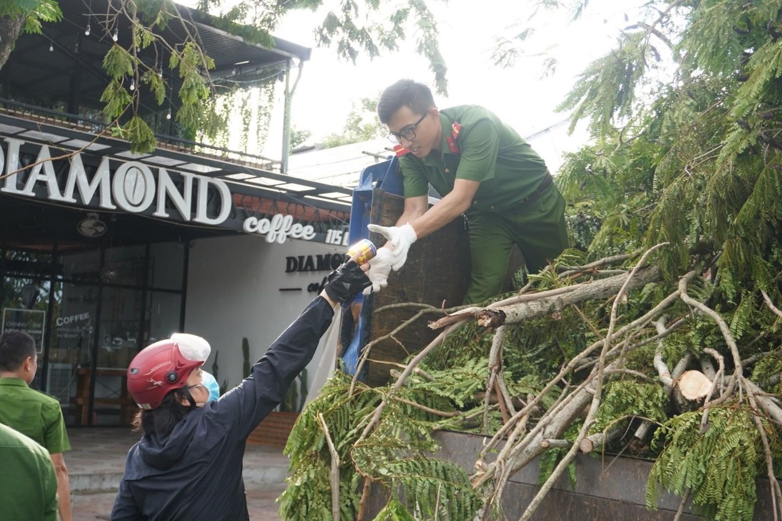 Trước tình hình đó, Ban Chỉ huy Công an TP. Huế huy động lực lượng phối hợp với các cơ quan ban ngành trên địa bàn tổng vệ sinh, khắc phục thiệt hại, và trả lại cảnh quan đô thị. Hàng trăm chiến sĩ công an, chiến sĩ trẻ hăng hái tham gia dọn dẹp vệ sinh nhiều tuyến phố, hỗ trợ người dân di dời cây cối bị ngã đổ.