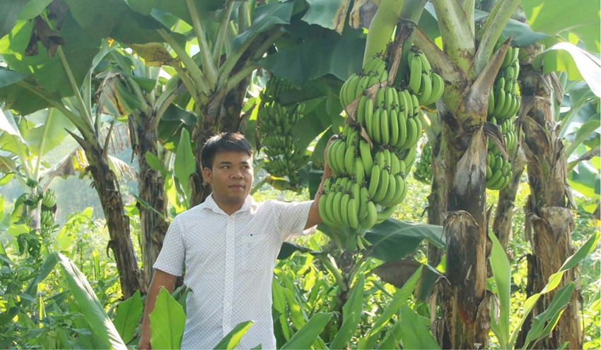 Từ chăn nuôi lợn hữu cơ và tận dụng nguồn phân bón vi sinh, anh Teo tổ chức sản xuất nông nghiệp hữu cơ tuần hoàn bằng việc mở rộng diện tích trồng chuối già lùn lên 1,5ha, 1ha sâm Bố Chính và cây ăn quả. Tận dụng nguồn phân bón hữu cơ không chỉ tạo ra sản phẩm sạch, an toàn mà còn đỡ tốn chi phí đầu tư trồng trọt. Nguồn phế thải từ chuối, rau trồng tại vườn làm thức ăn cho lợn, giảm chi phí đầu tư chăn nuôi.