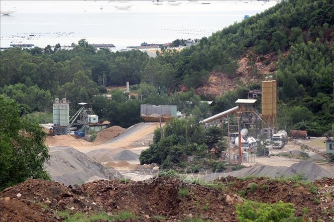 | Hoạt động khai thác và chế biến đá tại mỏ đá Hòa Mỹ (xã Xuân Cảnh, thị xã Sông Cầu). Ảnh: Xuân Triệu/TTXVN |