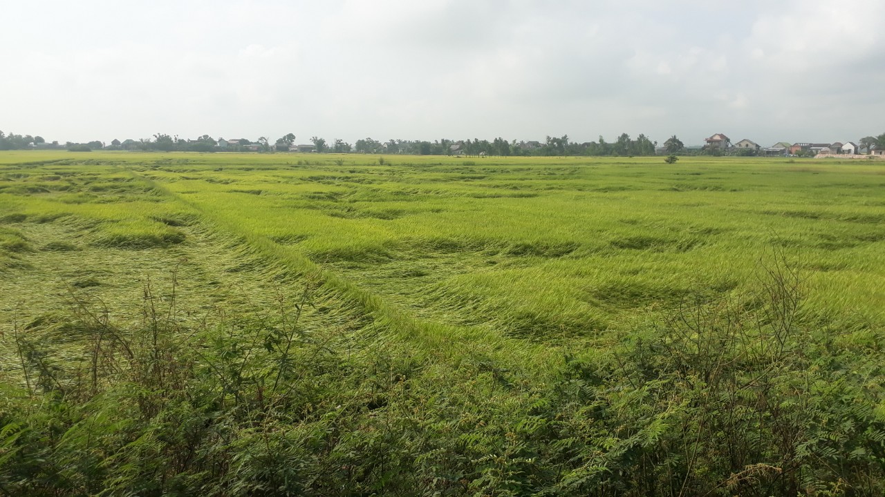 Lúa đổ ở xã Vinh Thái (Phú Vang) sau trận mưa chiều 29/4