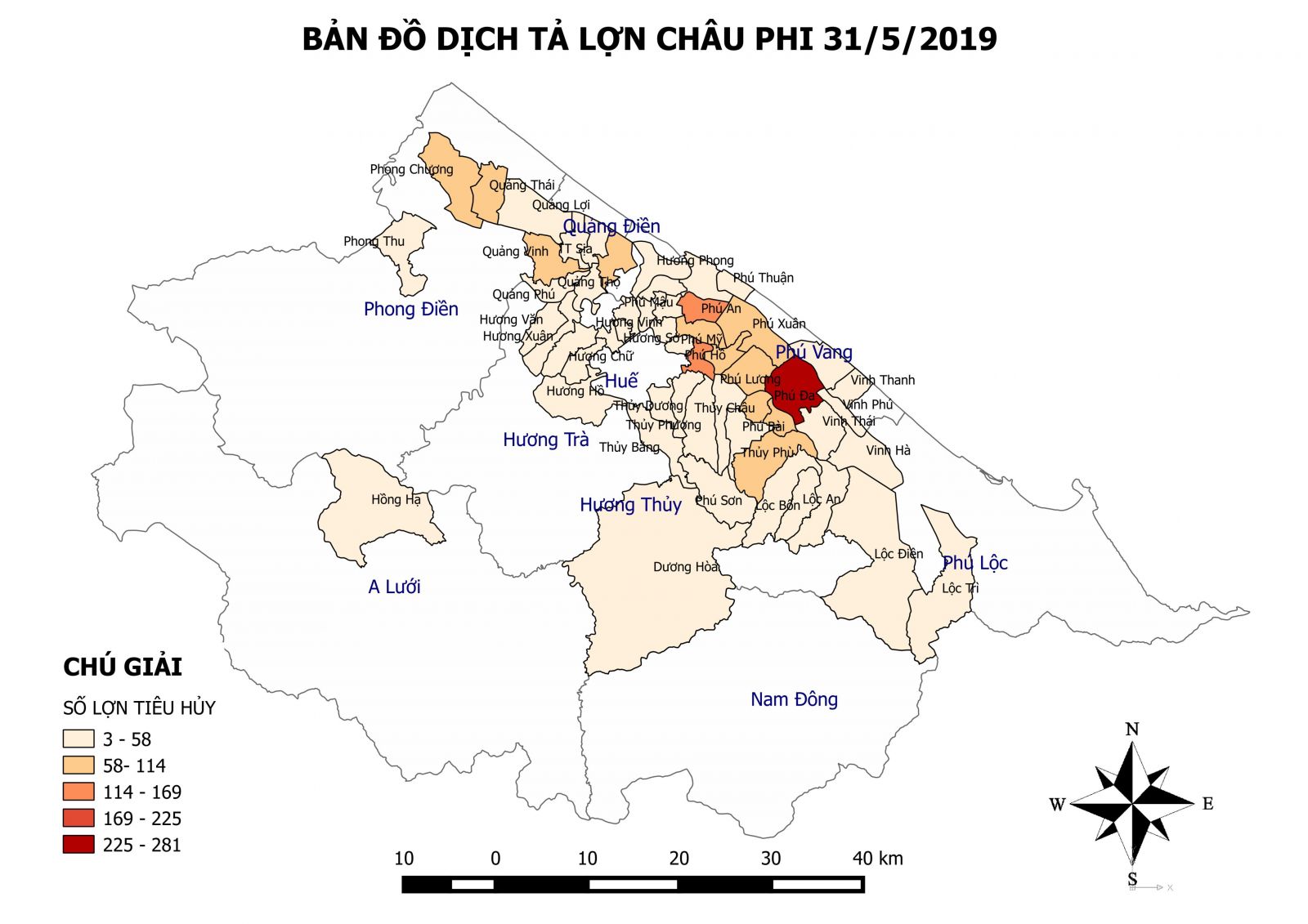 Đến nay, toàn tỉnh dịch đã xảy ra trên đàn lợn của 648 hộ chăn nuôi, 210 thôn, 55 xã thuộc 8 huyện Phong Điền, Quảng Điền, Phú Vang, Phú Lộc, A Lưới, thị xã Hương Trà, Hương Thủy và TP. Huế.