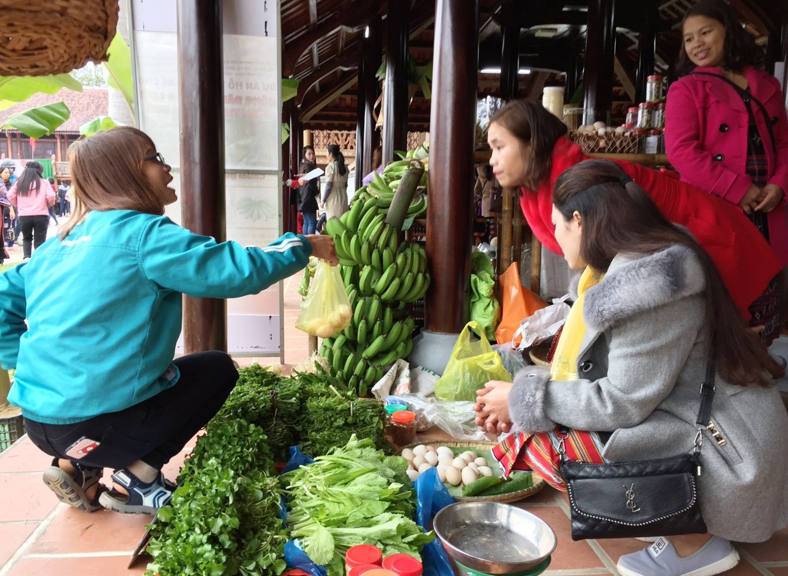Chọn mua nông sản tại gian hàng của Hội LHPN xã Hồng Kim