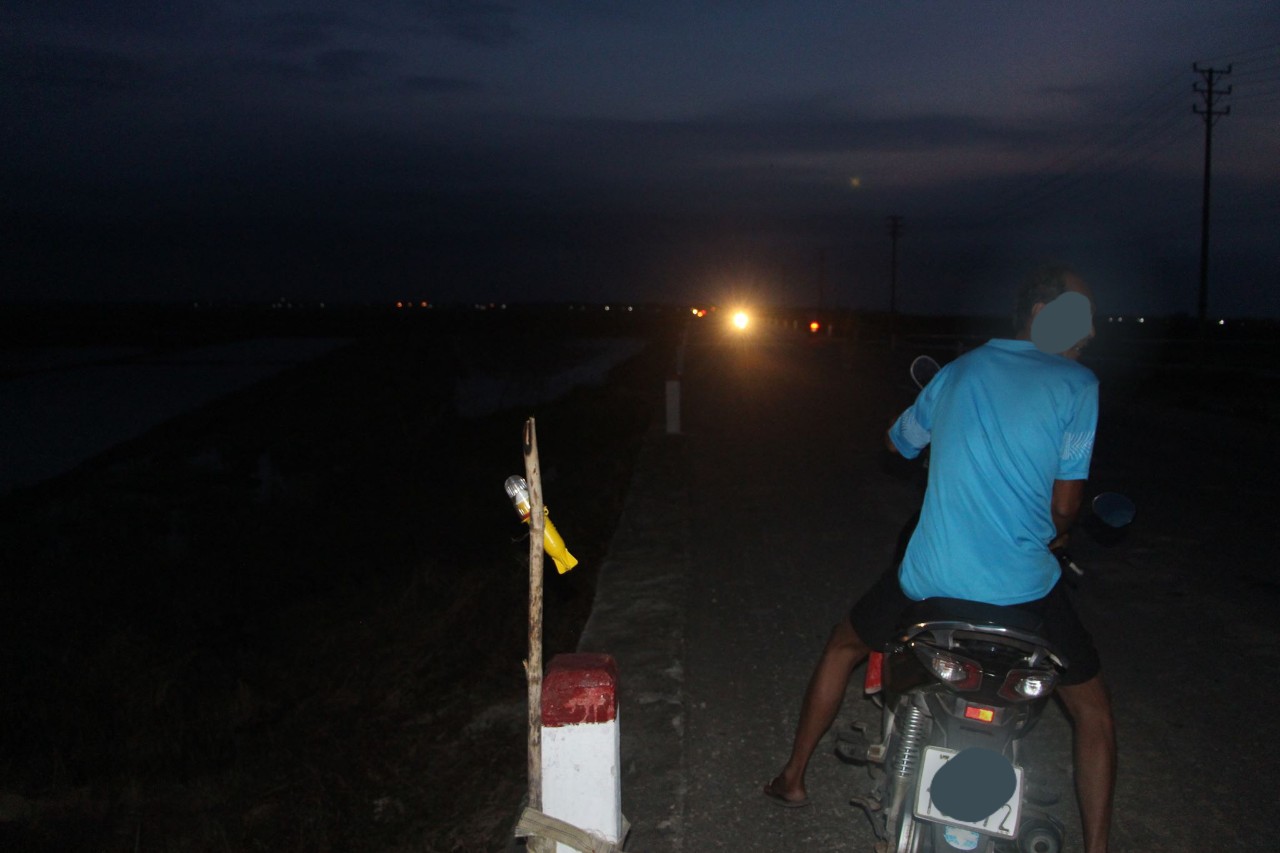 Người dân sử dụng đèn tín hiệu và canh bẫy chuột bằng xung điện cạnh quốc lộ 49B