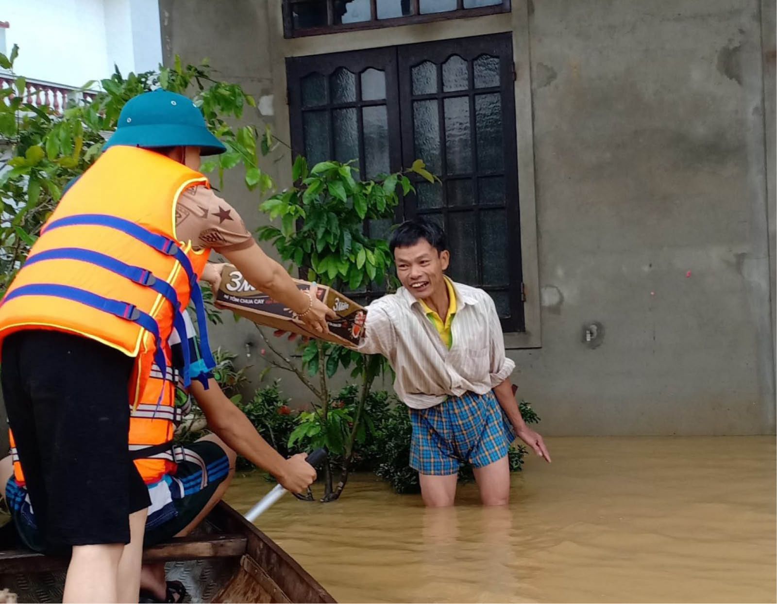 Cứu trợ lương thực cho các hộ ngập sâu ở Quảng Thành