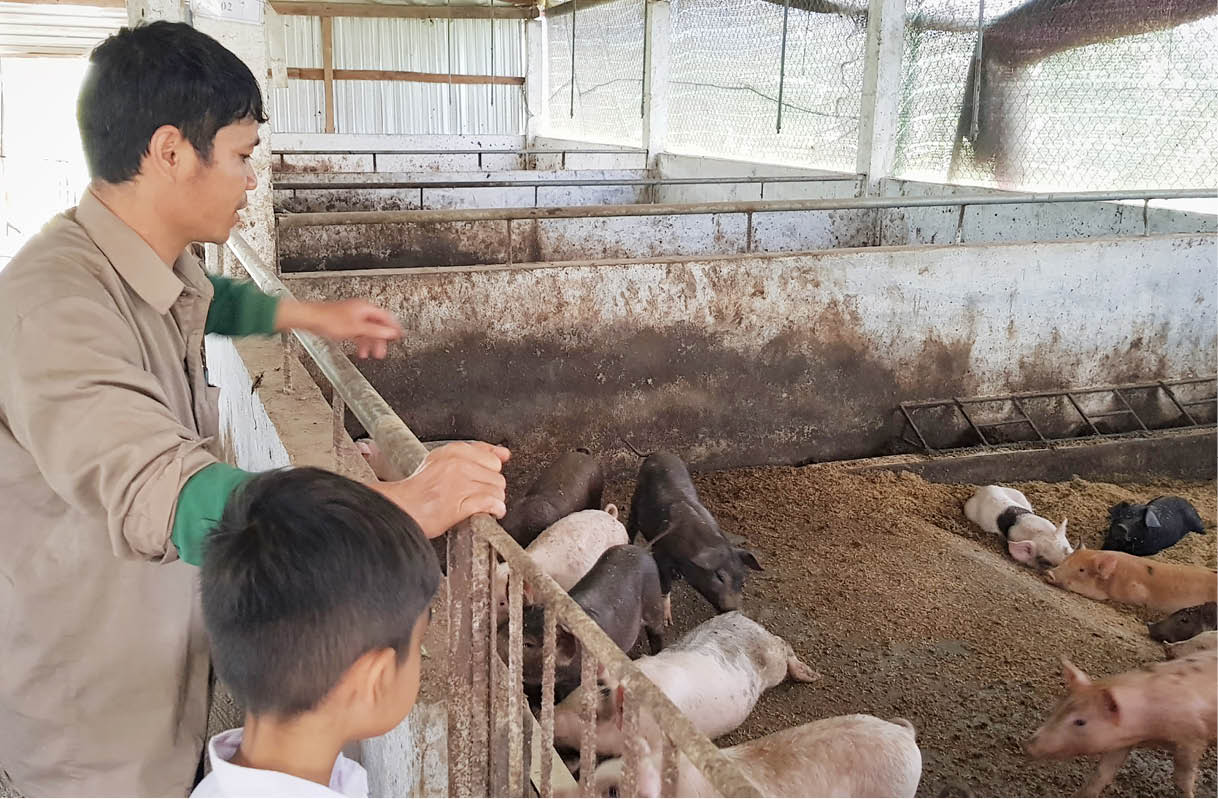 Nhìn vào trang trại 2ha của gia đình anh Teo, nhiều người không ngớt lời thán phục. Ngoài trại heo hữu cơ còn là hàng chục gốc bưởi da xanh, vườn chuối, sâm Bố Chính. “Họ bám ruộng vườn suốt ngày. Vợ đi dạy về còn phụ thêm chồng. Thứ bảy, hai vợ chồng làm việc quần quật. Thiệt là nể”, một người hàng xóm kể với chúng tôi.