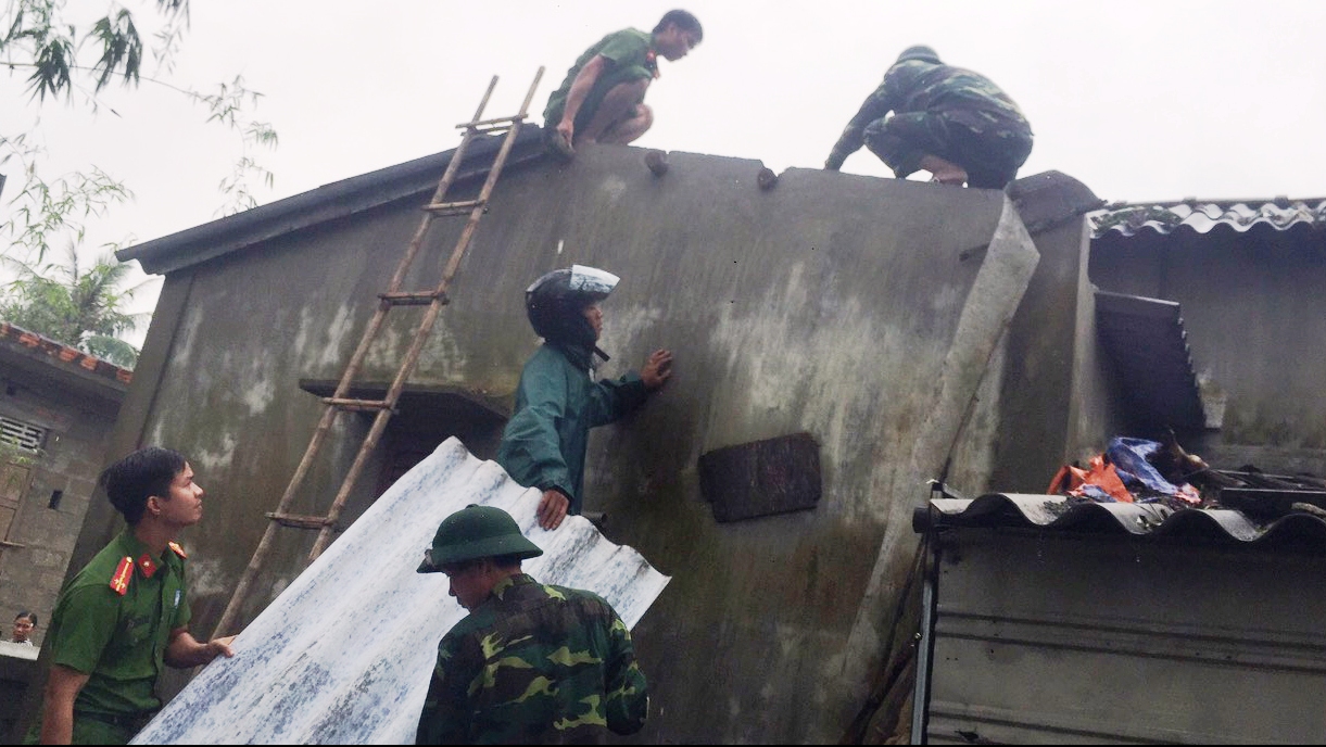 Trung tá Nguyễn Xuân Thiện, Chỉ huy trưởng Ban CHQS huyện Quảng Điền cho hay, sau khi bão tan, chúng tôi cử toàn bộ cán bộ, nhân viên Ban CHQS huyện và huy động trên 200 chiến sĩ lực lượng dân quân của 11 xã, thị trấn khẩn trương về các địa bàn giúp bà con lợp lại nhà bị tốc mái, cắt cây ngã đổ ở các trục đường, trường học, dọn dẹp thu gom rác, làm sạch vệ sinh môi trường.