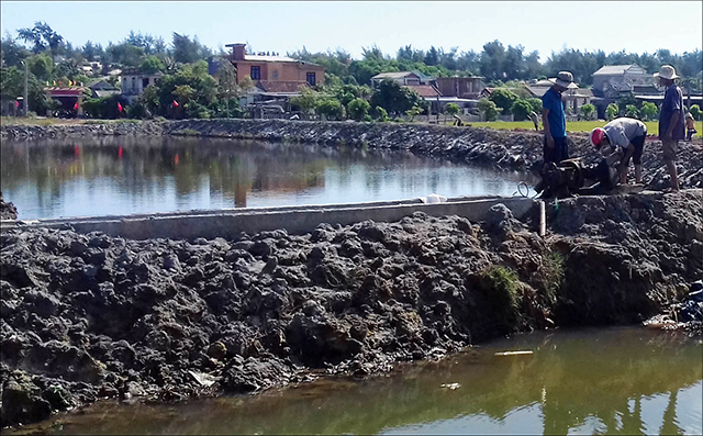Ngoài các yếu tố môi trường, trước mùa mưa lũ, ông Võ Văn Chương cũng như các hộ NTCT ở xã Quảng Công (Quảng Điền) gia cố bờ bao vững chắc, dùng lưới che chắn quanh ao hồ tránh tôm bị trôi. Ông Chương thường xuyên theo dõi lượng mưa, mực nước trong ao hồ, nếu quá cao phải tiêu thoát tránh vỡ hồ do ngập nước. Khi tiêu thoát nước trong ao hồ thì phải bổ sung thêm nguồn nước mặn, ổn định độ pH phù hợp.