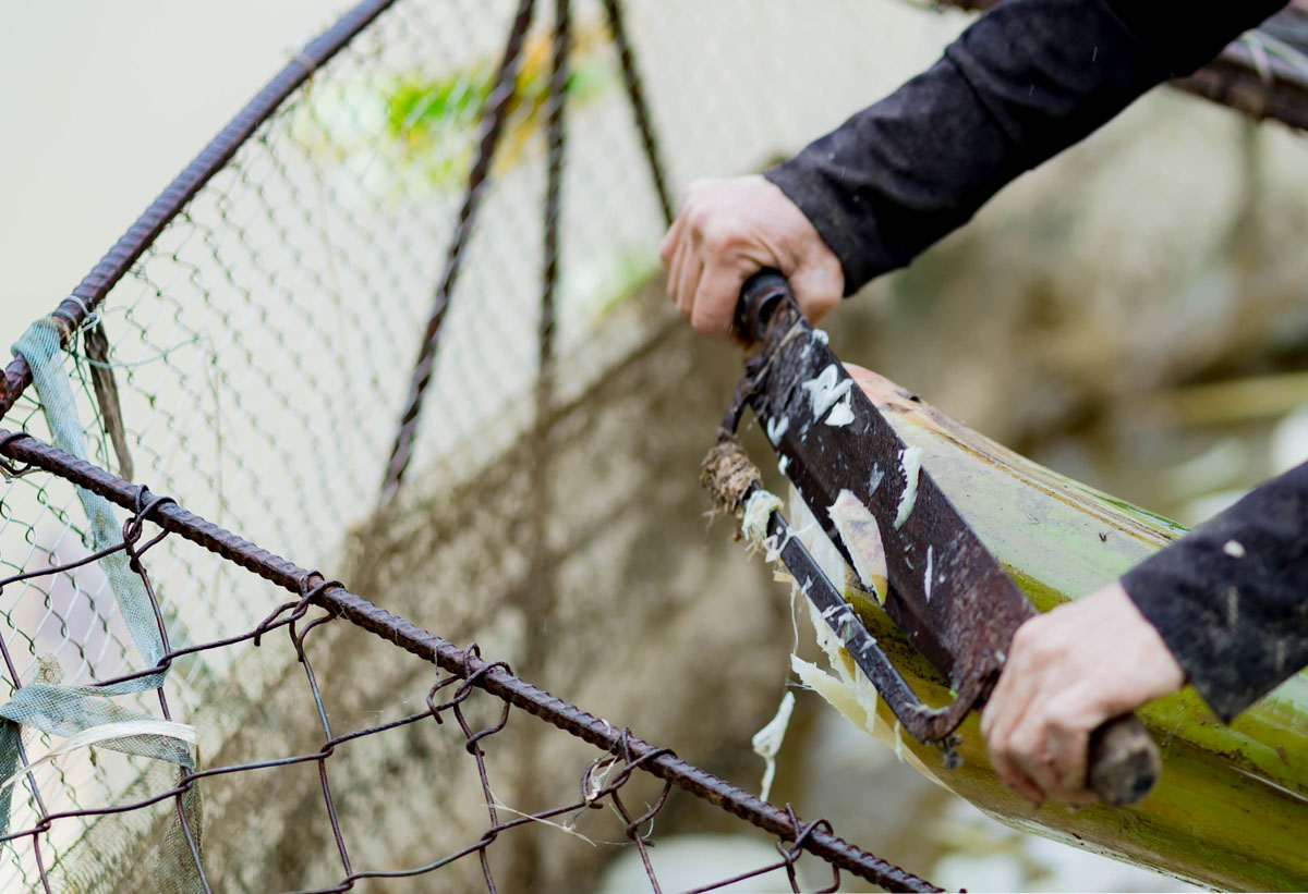Anh Nguyễn Thượng Uyển đội mưa kiếm cỏ cho 3 lồng cá