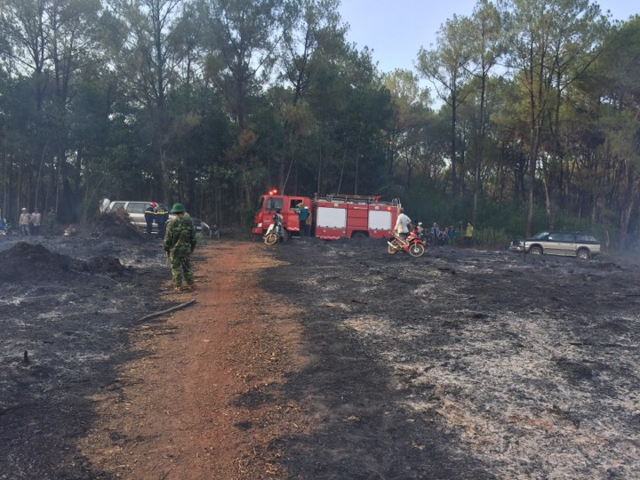Hiện trường cháy rừng ở Phong Xuân