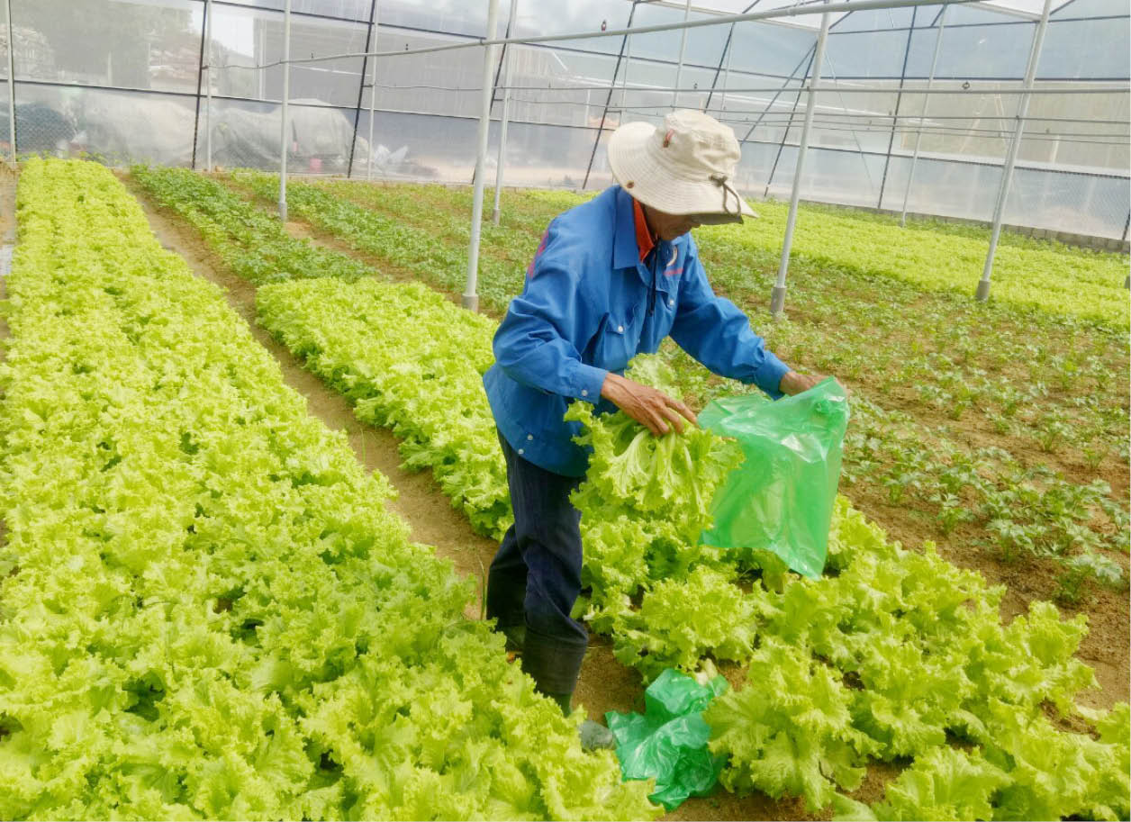 Người dân chăm sóc rau. Ảnh: Hải Triều