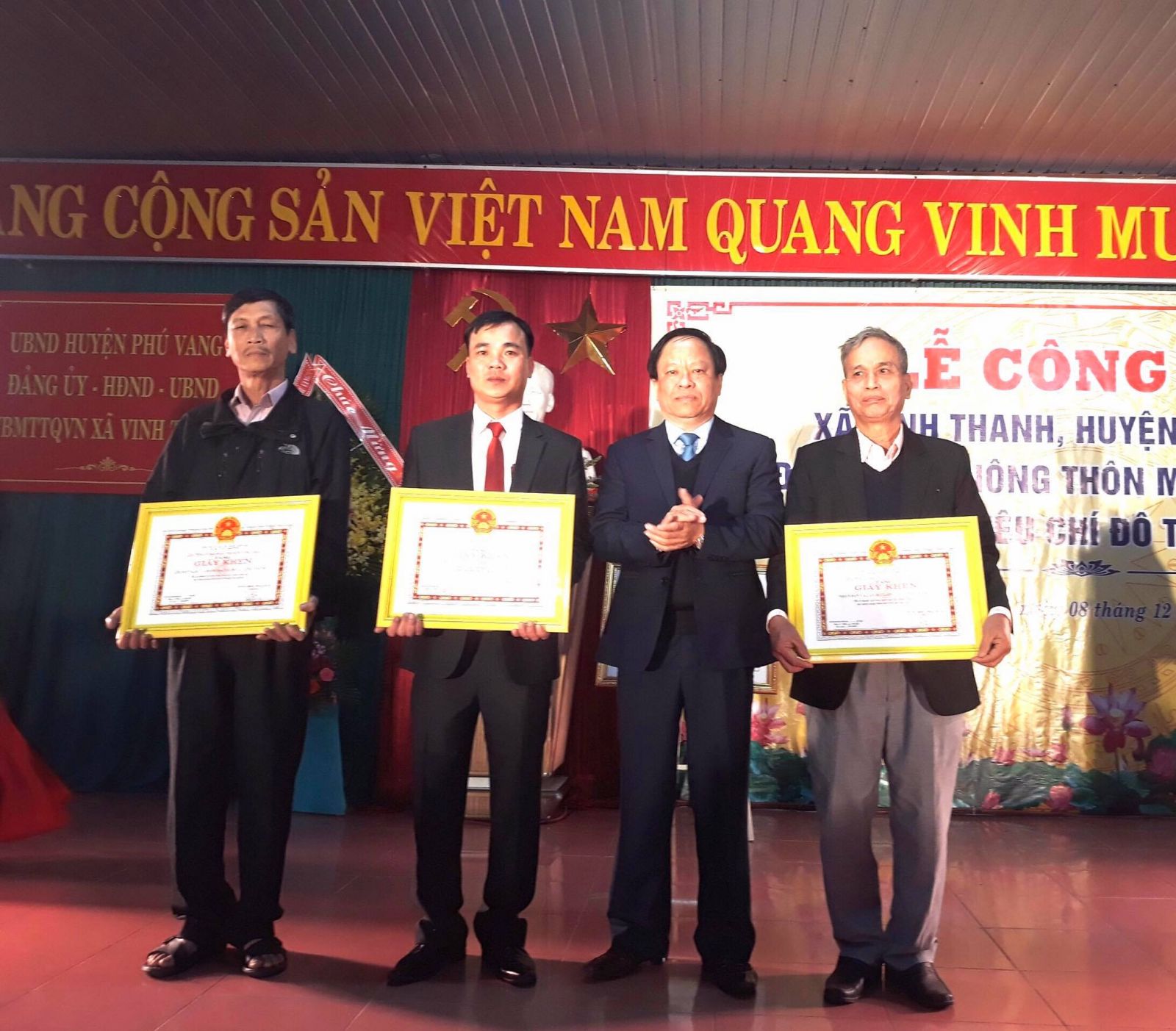 Dịp này, UBND huyện công bố quyết định công nhận xã Vinh Thanh đạt đô thị loại 5, khen thưởng 6 cá nhân, 3 tập thể có thành tích xuất sắc trong phong trào xây dựng NTM.