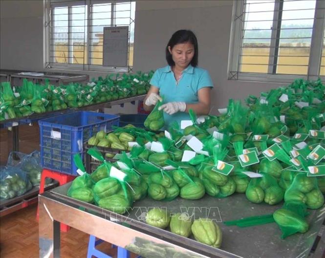 Sản phẩm quả su su của hợp tác xã rau an toàn Vĩnh Phúc đã được được in logo, đăng ký mã vạch, mã số. Ảnh: Nguyễn Thảo/TTXVN