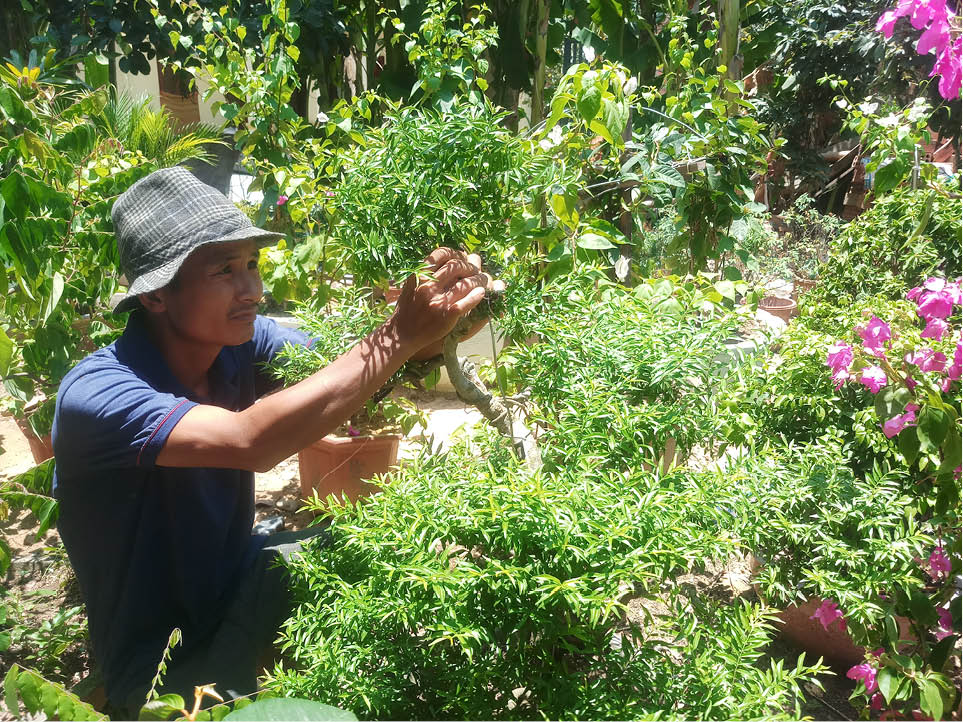 Từ 200 cây ban đầu, nay anh đã phát triển lên 600 cây/năm, cung cấp một phần cho thị trường cây cảnh tết ở Huế.
