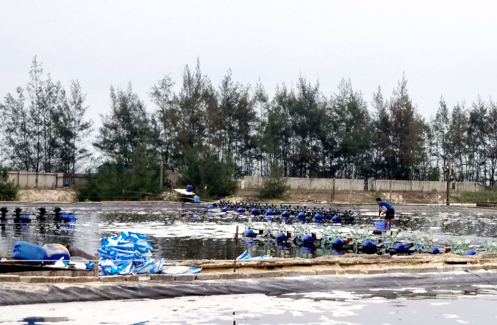 Người nuôi ở thôn Hải Đông, xã Phong Hải chăm sóc tôm