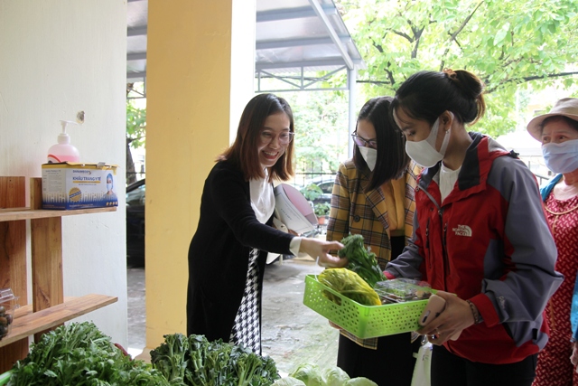 Người dân mua nông sản tại gian hàng sản phẩm liên kết chuỗi giá trị