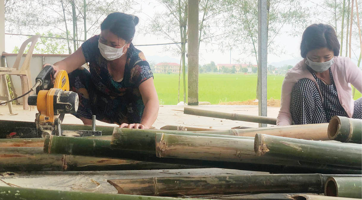 Gia công nguyên liệu tại HTX Mây tre đan Bao La (Quảng Điền)