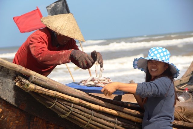Dọc vùng biển bãi ngang các xã Điền Lộc, Điền Hòa, Phong Hải (huyện Phong Điền), Quảng Công, Quảng Ngạn (huyện Quảng Điền)…những chiếc thuyền nan công suất trên dưới 14CV liên tục cập bờ đầy ắp cá khoai. Từ sau sự cố môi trường biển, chưa lúc nào bãi biển các địa phương ven biển này lại đông vui đến thế. Ông Trương Văn Hòa (thôn Hải Thành, xã Phong Hải) bày tỏ: “Gần một năm qua, lượng hải sản giảm sút rõ rệt. Nhiều chuyến biển trở về tay trắng. Ngoài ra, sự cố môi trường biển khiến ngư dân lo lắng khi vươn khơi. Tuy nhiên, đến vụ cá khoai năm nay, tụi tui liên tục trúng đậm”.