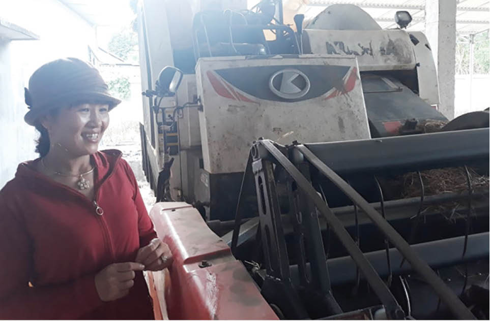 Chị Ngọc cho biết, lãi ròng từ 4 máy gặt đập liên hợp và 2 máy cuốn rơm khoảng 100 triệu đồng mỗi vụ mùa. Từ nỗ lực đó, bây giờ vợ chồng anh Thuật, chị Ngọc có nhà cửa, cơ ngơi bề thế…