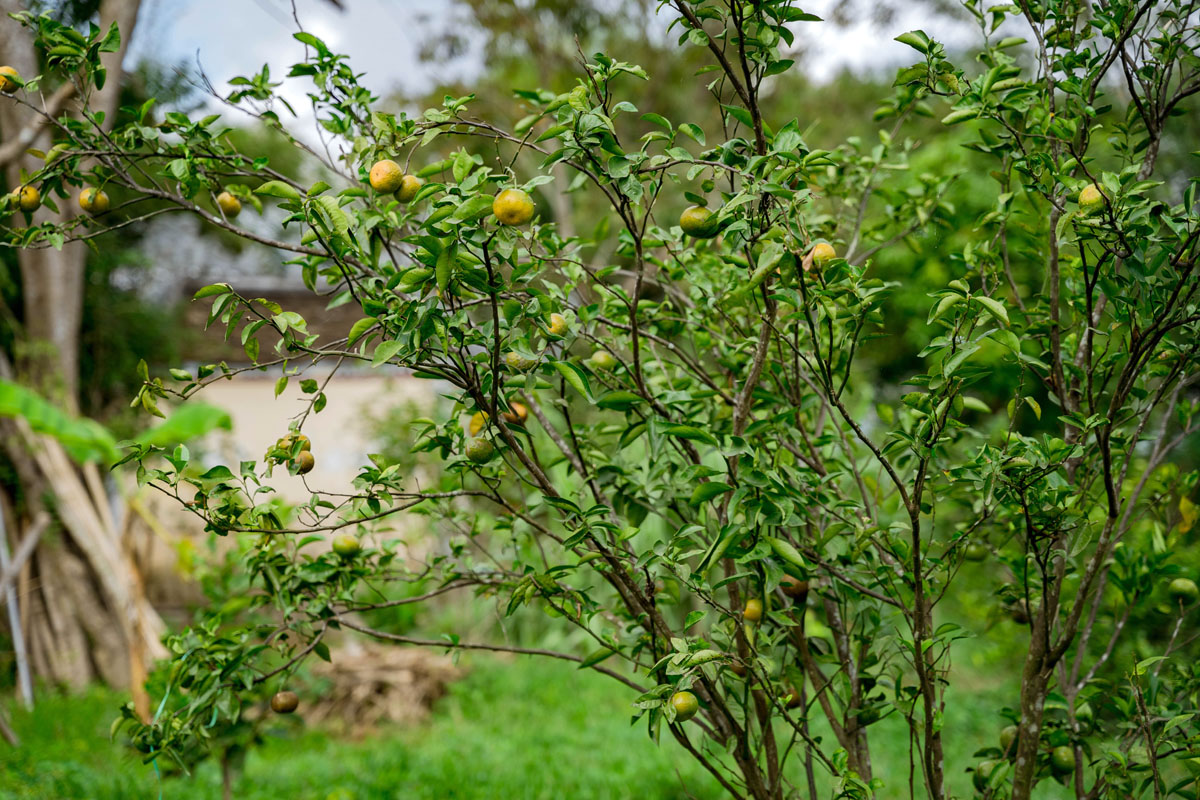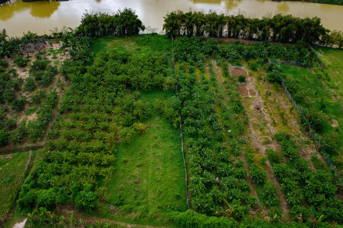 Ông Trần Hữu Thỉ, 70 tuổi, người quen cũ nhận ra chúng tôi, mở cánh cổng tre mời khách vào vườn. Khu vườn giờ trồng toàn ổi, tìm kỹ lắm mới phát hiện vài gốc quýt lúp xúp được ông Thỉ che chắn chống cành cẩn thận. Ông kể trận lụt dài ngày năm 2020 làm chết 100 gốc quýt đã cho trái. Một sào quýt cho thu nhập bình quân 30 triệu đồng, thiên tai quét qua một đợt tất cả trở về số 0.