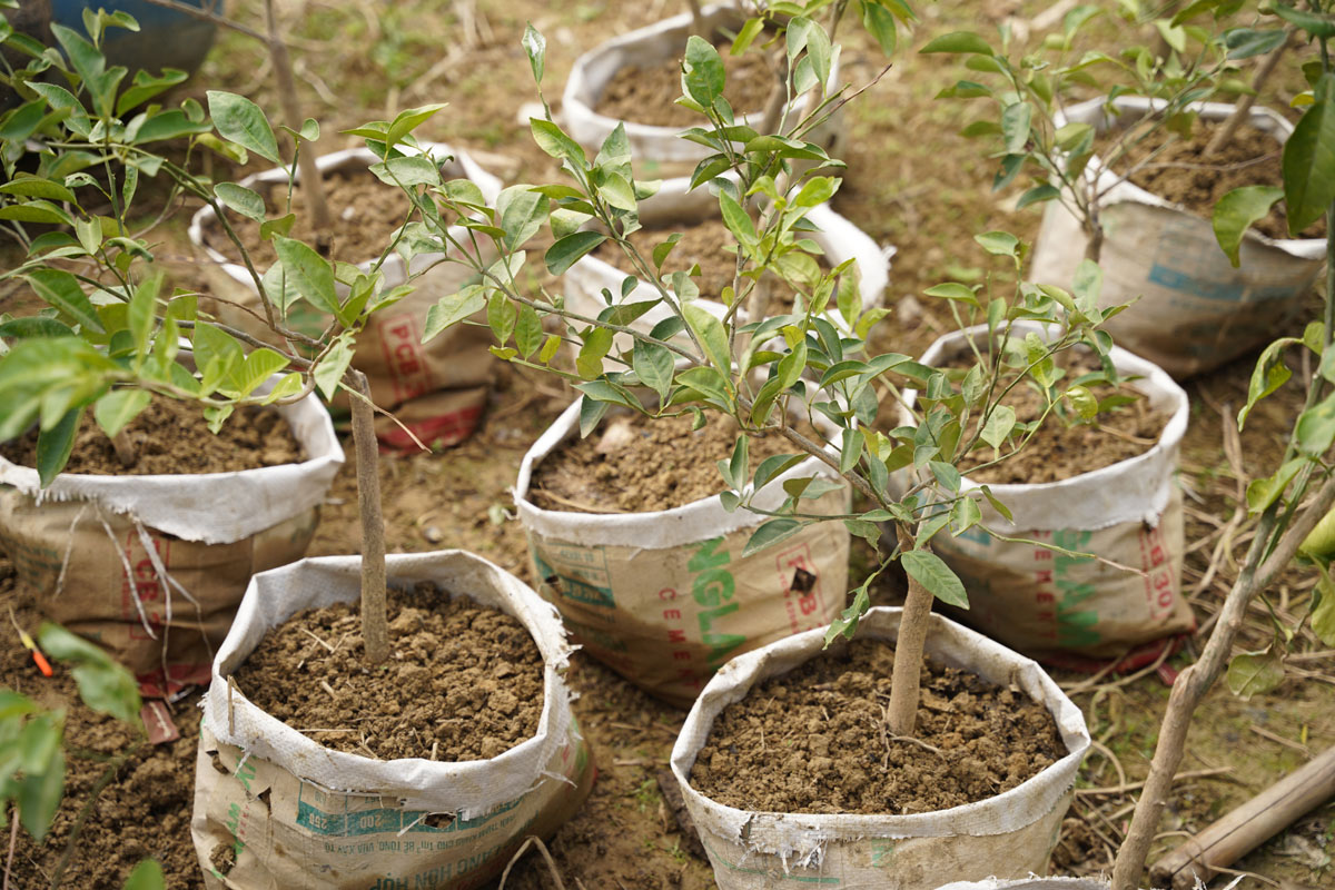 Một số hộ dân áp dụng phương pháp ghép quýt Hương Cần lên gốc bưởi theo hướng dẫn của Trường ĐH Nông Lâm, ĐH Huế