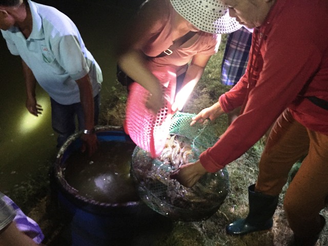 Phong Điền tranh thủ thu hoạch tôm ban đêm trong mùa mưa lũ