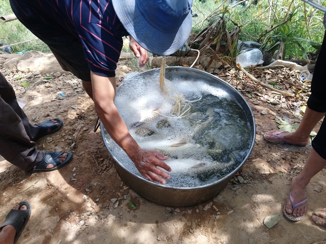 Người dân vớt cá lên cầm cự để bán. Ảnh: Đắc Đức