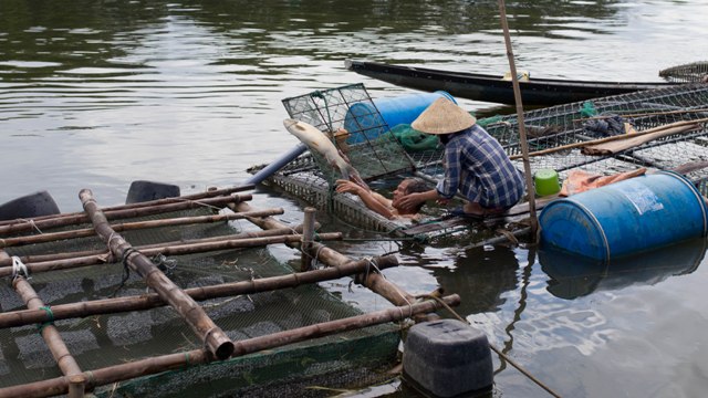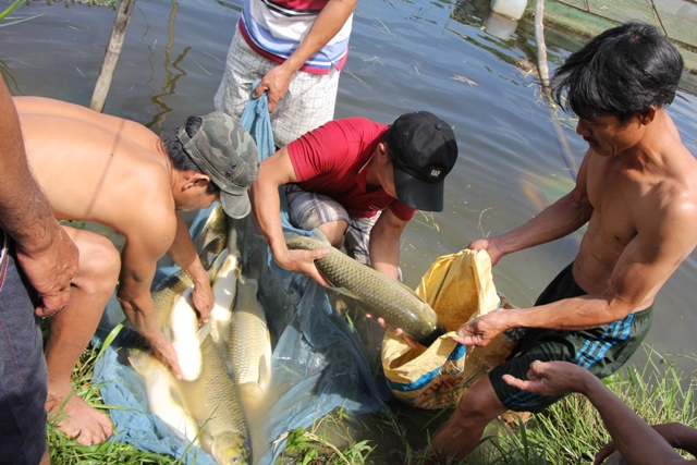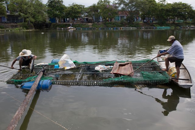 Cảnh ngư dân vớt cá sau hai năm chăm sóc. Ảnh: Trung Phan