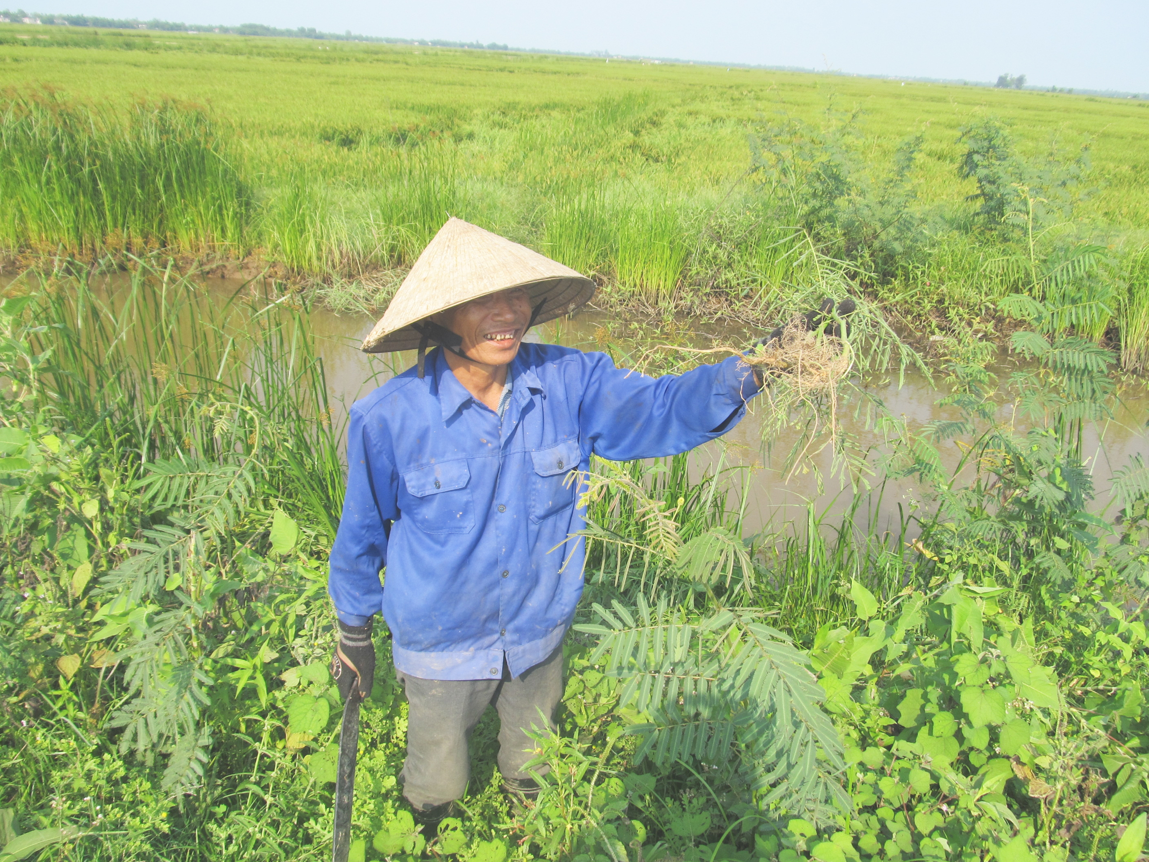 - Cây to thì mình “phạng” tận rễ, còn cây nhỏ thì “trập côộc” nhổ lên hết. Làm ri thì có cực thiệt, nhưng vụ sau mình khỏe. Những lúc rảnh rỗi, anh em tui có đi thăm ruộng trưa ruộng tối thì cũng tranh thủ để ý, tìm cách diệt tận gốc, nhờ rứa nên “tụi hắn” đỡ sinh sôi, đồng ruộng sạch sẽ mà mình đỡ công chặt nữa, ông Chiến hóm hỉnh.