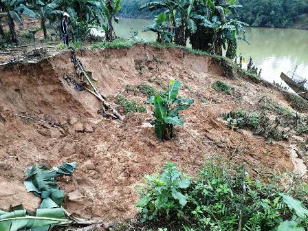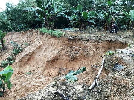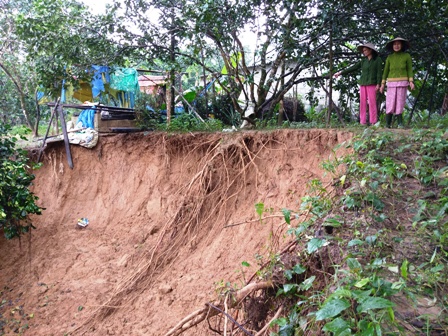 Sạt lở làm mất đất nông nghiệp, vườn tược bị cuốn trôi tại thôn Võ Xá (Thủy Bằng)