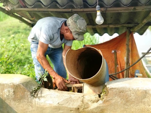 Nông dân sửa chữa hệ thống bơm nước vào đồng ruộng