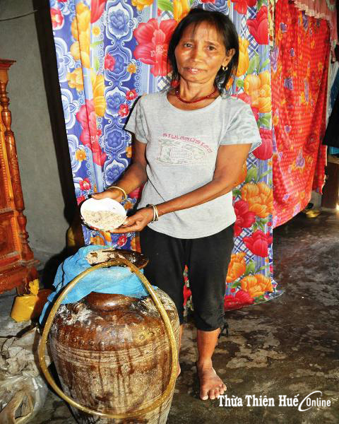 Dùng bánh a wat tiếp đãi rể quý là nét văn hóa tựa “miếng trầu là đầu câu chuyện” trong truyền thống của người Kinh vậy. Bánh a wat được dọn sẵn trên nhà sàn, bên ché rượu cần cũng được ủ từ men của nếp than, nếp máu. Gia đình “họ nhà gái” sẽ thưa chuyện với họ nhà trai về tục lệ cưới hỏi giữa con cháu của họ. Để “mục sở thị” loài nếp quý khi đã xay thành gạo, ông Nguyễn Văn Chiêu dẫn chúng tôi đến nhà ông Quỳnh Lầm (thôn Tà Roi). Trên gian bếp đã nhuốm màu thời gian, Quỳnh Lầm chỉ còn cất lại khoảng chục kg nếp than, nếp máu để chuẩn bị lễ cưới cho đứa con gái út. Ông Quỳnh Lầm cho biết: “Nếp này được thu hoạch từ mùa vụ trước, phải giữ cẩn thận để khi cưới, hỏi mới dùng đến. Do chỉ cấy chừng vài a chói nên khi có việc, có tiền chưa chắc đã tìm mua được loại nếp này”. “Nếp than còn được bà con dùng nấu cháo để trị bệnh đường ruột. Đối với trẻ sơ sinh khi ốm dậy, phụ nữ sau khi sinh đều dùng rất tốt”, Bí thư Chi bộ thôn Ta Roi cho biết.