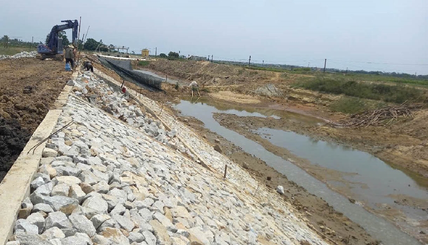 Tính đến ngày 30/6/2025, tuyến sông đã được nạo vét, khơi thông trên chiều dài 1.204m; khối lượng gia cố hai mái kè sông đã hoàn thành 2.000m. Hệ thống cống ngang tuyến, tiêu thoát nước cũng đã được lắp đặt, kết nối đồng bộ. Tổng giá trị khối lượng thực hiện đạt xấp xỉ 80% theo hợp đồng tổng thầu.