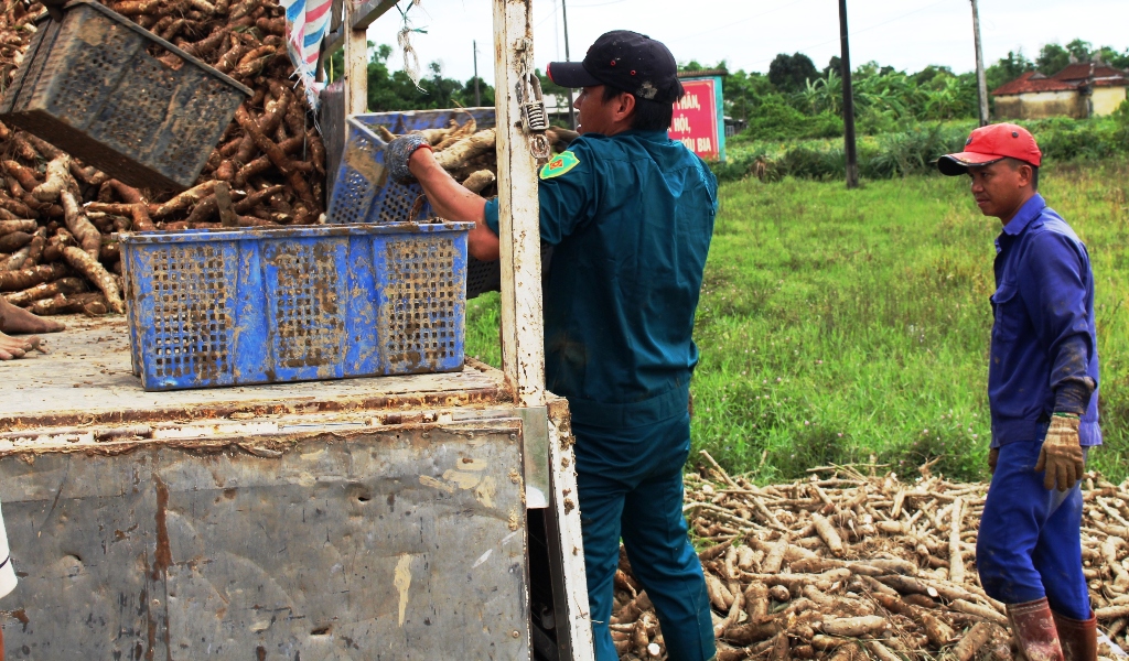 Dùng xe cơ giới vận chuyển sắn. Ảnh: Nguyễn Khoa Huy