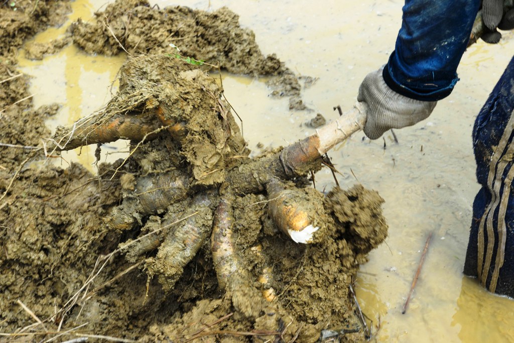 Sắn ngâm nước có chiều hướng thối củ. Ảnh: Nguyễn Khoa Huy