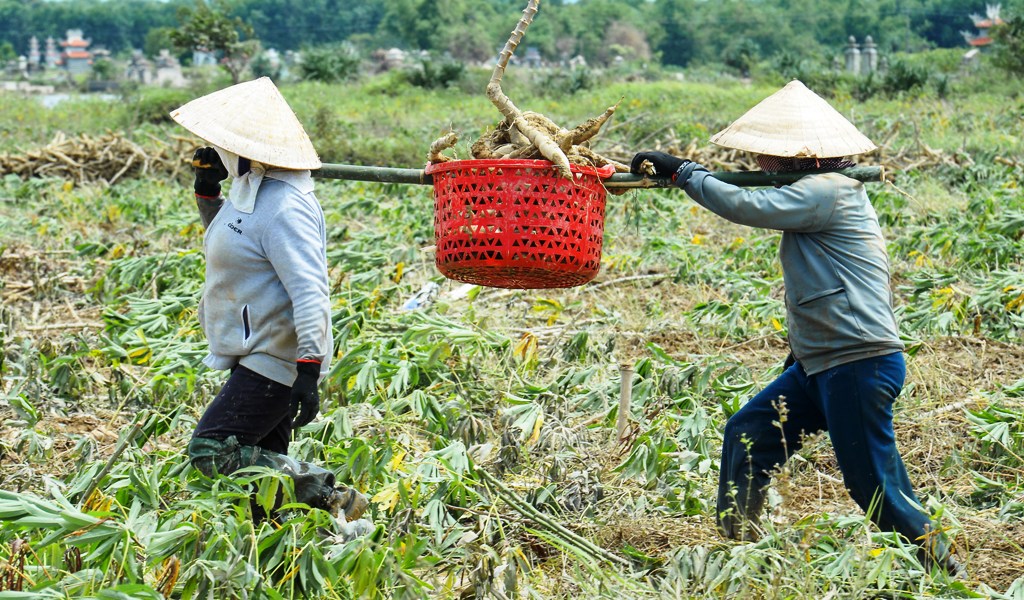 ...Huy động nhân lực đưa sắn ra khỏi đồng ruộng. Ảnh: Nguyễn Khoa Huy